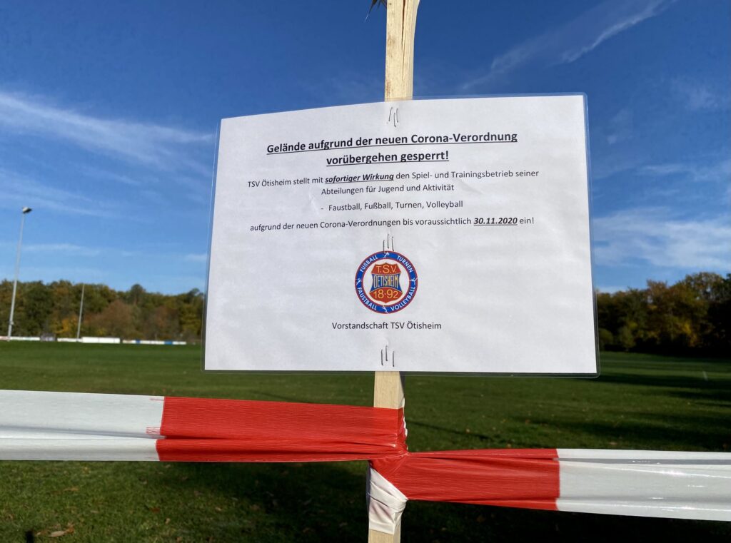 Einstellung Sport-Betrieb und Absperrung des Sportgeländes bis 30.11.