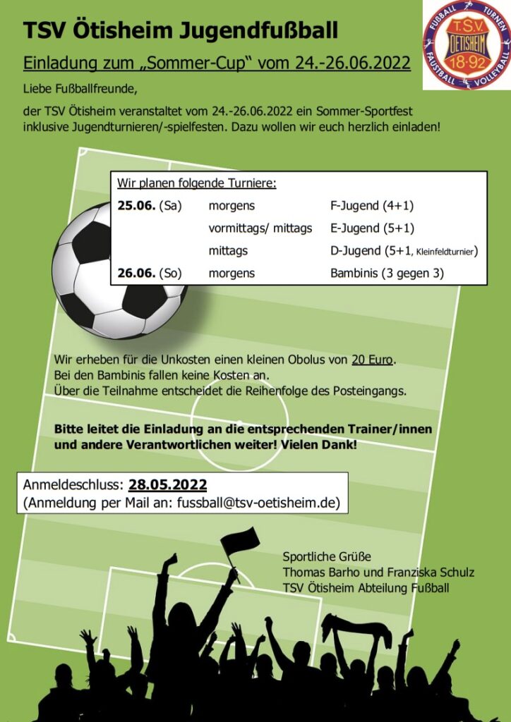 Jetzt anmelden unter fussball@tsv-oetisheim.de mit Angabe des Teamnamen.