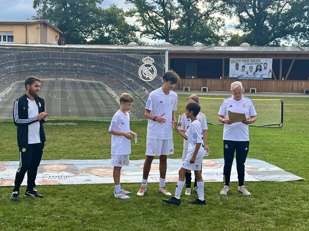 Eine Woche lang von Montag, den 02.09., bis Freitag, den 06.09.24, durften 35 Kids aus verschiedenen Vereinen das besondere Fußballcamp auf dem TSV Gelände besuchen. Königlich und wahnsinnig toll!Ein bunt gemischtes Programm mit viel Profi-Feeling!Am letzten Tag wurden sogar verschiede Sieger/innen gekürt, die nun die Chance auf weitere geniale Fußballcamps haben.- Best Player (meiste Tore): Kevin Scherzer.- Best Teamplayer: Andrej Veselinovic und Clara Zimmer.- Adidas Penalty King: Marik Sonnleitner.Wir gratulieren euch! Ihr seid in der engeren Auswahl und könnt mit etwas Glück ein Elfmeterschießen während der Halbzeitpause im berühmten Estadio Santiago Bernabéu gewinnen.Wir wünschen daher weiterhin viel Erfolg und bedanken uns bei allen Teilnehmenden sowie Verantwortlichen für dieses Event – ein tolles Sommerferien-Ende!
