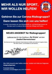 Auch uns als Verein sind die örtlichen Gaststätten wichtig, daher freut es uns, wenn wir sowohl ihnen als auch den Risikogruppen helfen können 💪